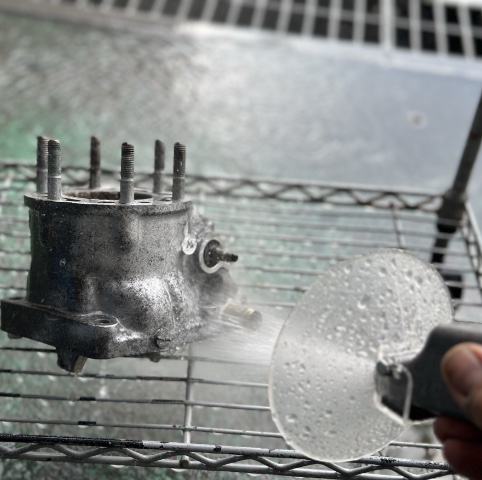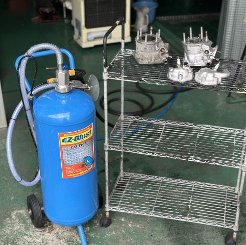 クランクケースやシリンダーなど、アルミの腐食やオイル汚れをなどをEZブラスターで綺麗にしていきます! どこまで綺麗になるか楽しみですね♪ 頑張ってピカピカにします!