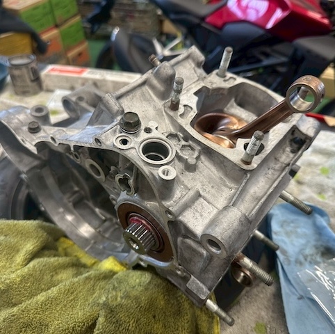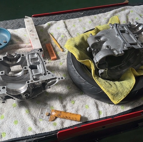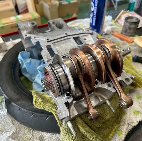 クランクケースがようやく綺麗仕上がったのでクランシャフト本体を組み上げて行きます。クランクシャフトは井上ボーリングさんにてラビリンスシール仕上げのオーバーホール済みです!